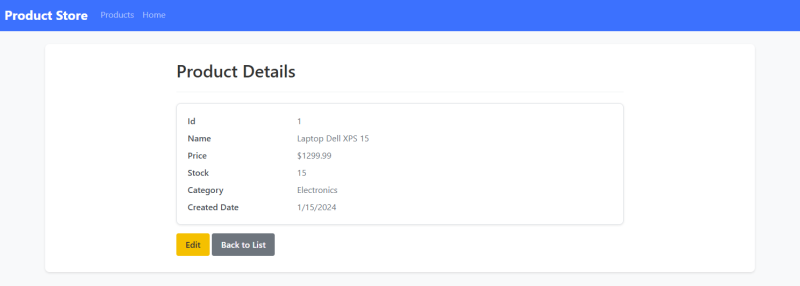 - Product Details – /Product/Details/{id} (2pts)
