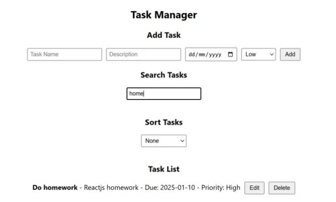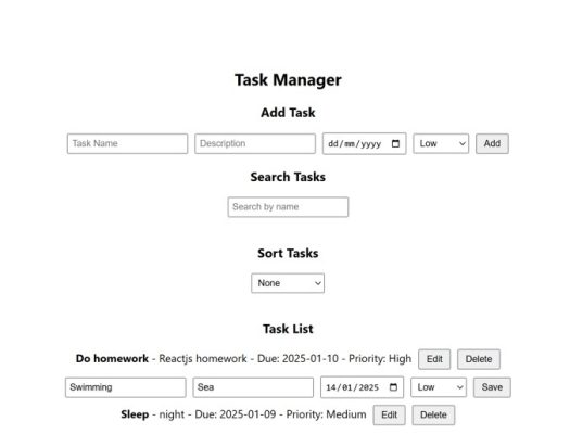- Add, Edit, Delete, and Search Tasks: