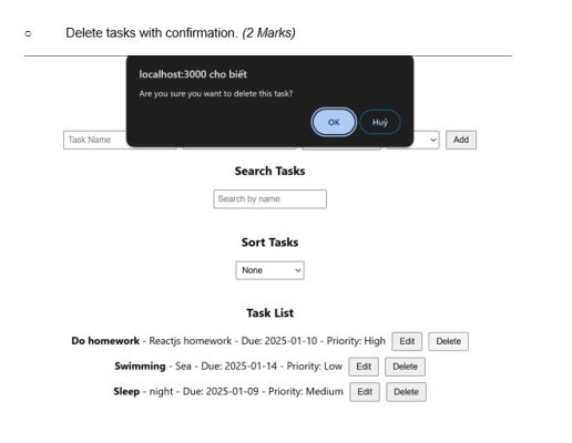 - Delete tasks with confirmation. (2 Marks)